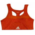 Regata Adidas fabricada com a tecnologia ClimaColl, que evapora rapidando o suor mantendo o atleta seco e fresco. Com decote nas costas estilo nadador com elástico mantendo mais firme ao corpo. Também possui elástico embaixo do busto para se adequar melhor ao corpo.