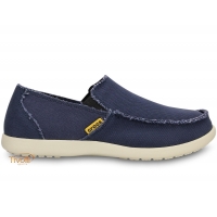 Estilo mocassim, o sapato Crocs Santa Cruz é feito com cabedal em tecido tipo lona, compõe diversos looks; Fácil de calçar; palmilha feita em Croslite™-o material dos Crocs tradicionais- contém pequenos nódulos que estimulam a circulação e massageiam os pés.