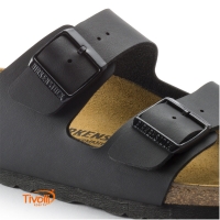 As palmilhas Birkenstock são feitas de cortiça e de látex natural e com os contornos com a forma de um pé saudável. Esses contornos garantem a distribuição de peso adequada, com arcos levantadas para ajudar a apoiar a forma natural do pé e estrutura. O “toe bar” permite que os dedos dos pés fiquem confortavelmente ajustados, estimulando a circulação e ajudando a manter o equilíbrio. O relevo do calcanhar mantém preenchimento natural do pé para proporcionar estabilidade. Essa tecnologia mantém a coluna e as pernas alinhadas, proporcionando uma postura saudável e confortável, a começar pelos pés. O revestimento em camurça controla a temperatura ao redor dos pés.